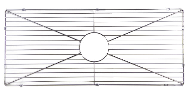 Protect your investment with this solid stainless steel grid that sits on the bottom of your fireclay sink. Protects the sink from nicks or cracks caused by heavy pots or pans dropped in your sink. Reduces the need for cleaning marks or stains at the bottom of the sink.