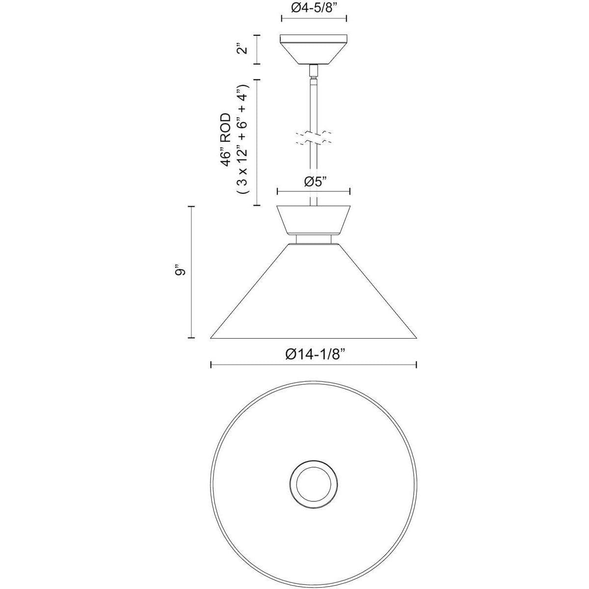 Alora PD470514MBGO HALSTON 14" PD MATTE BLACK GLOSSY OPAL GLASS ROD 46 1X60W E26