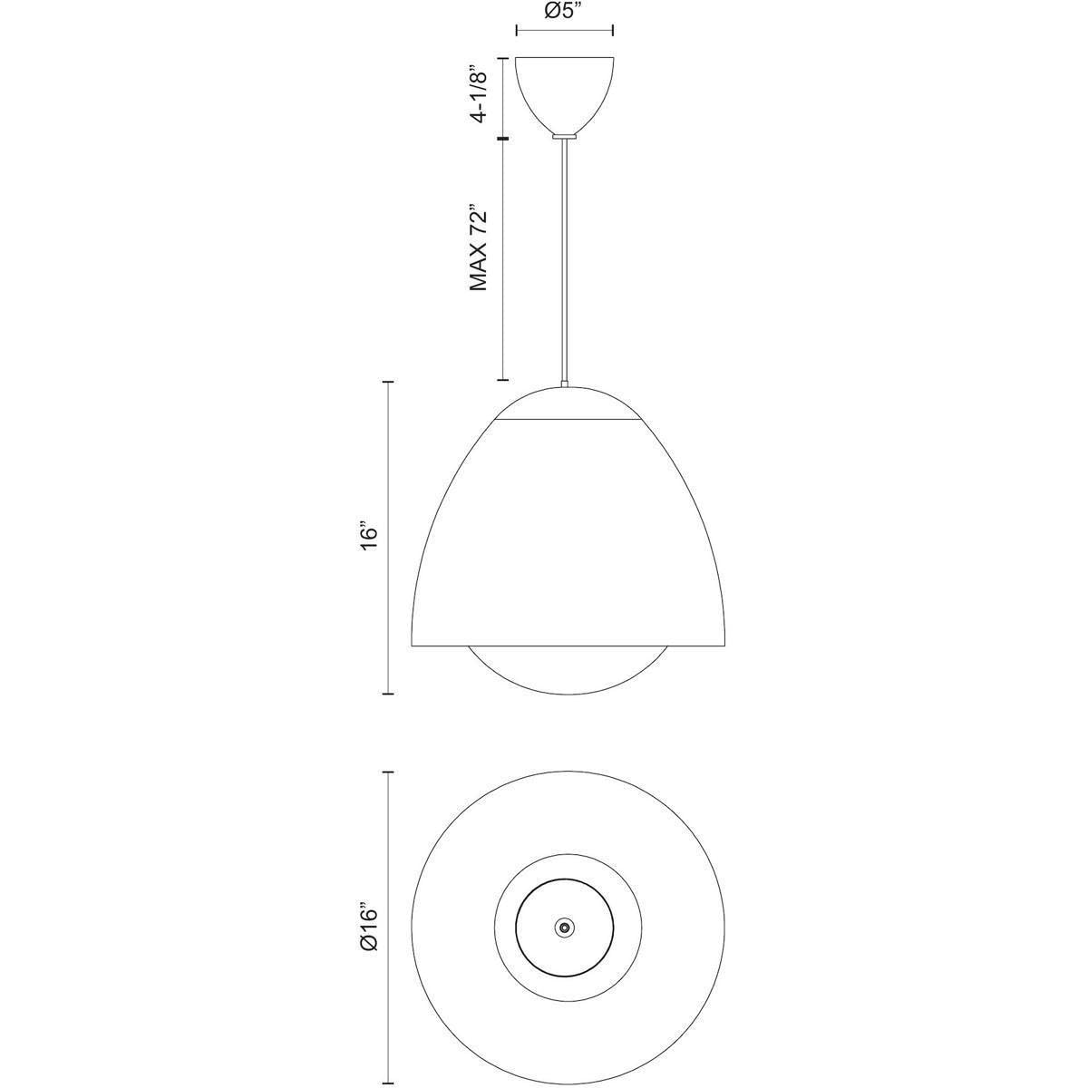 Alora PD529116MBOP KENJI 16" PD MATTE BLACK OPAL GLASS CORD 72 1X60W E26