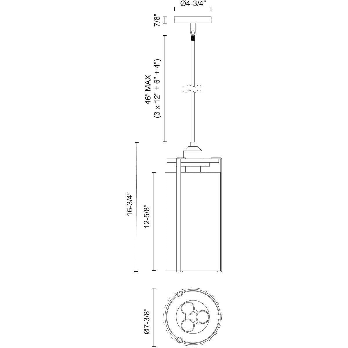 Alora PD536107MBWC BELMONT 7" PD MATTE BLACK CLEAR WATER GLASS ROD 46 3X60W E26