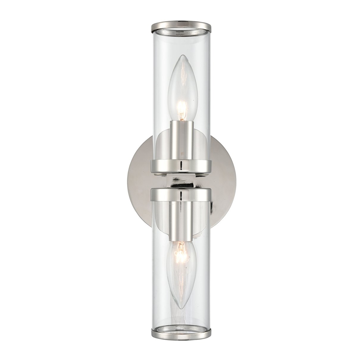 Alora WV309002PNCG REVOLVE WALL VANITY 2 LIGHT POLISHED NICKEL CLEAR GLASS