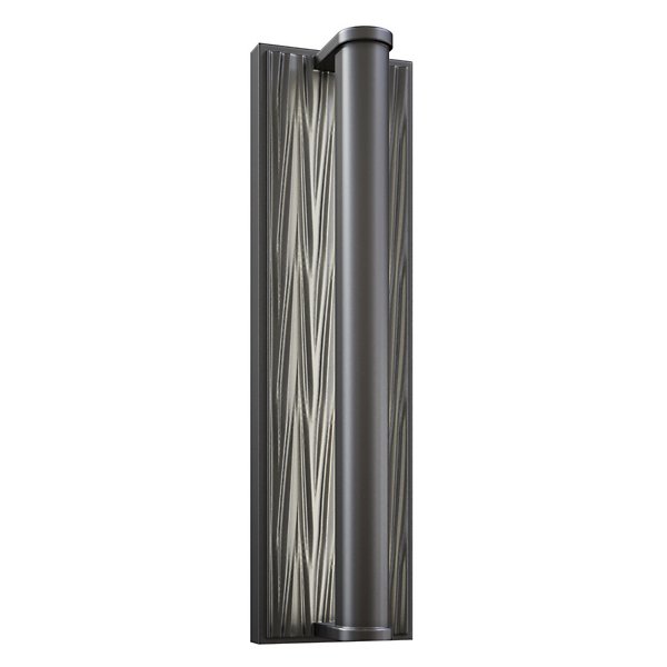 The Kensington LED Rectangular Wall Sconce is a modern piece of design from the creative mind of fine artist and product designer Alan Pepin. A vertical metallic rectangle with textured detailing makes up the mounting plate. A thin cylindrical bar sits parallel to it, integrated LED illumination glowing from within. It’s an energy-efficient and visually stimulating piece of lighting design that can effortlessly elevate an interior space of choice.