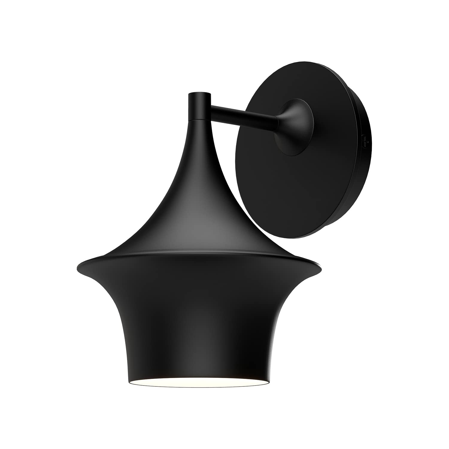 The Emiko Wall Sconce from Alora Mood provides a smooth, curving accent to walls. A daringly contoured creation springing from a stepped circular wall mount, it extends a short stem out to a vertical conical shade, wrapping damp-listed lamping that adds a stylish modern note to the otherwise-simple fixture. The one-piece shade contracts further as it descends from the cone-shaped upper housing, creating a channel of intensive downlight accentuated by a warm ambiance that reflects off the smooth interior.