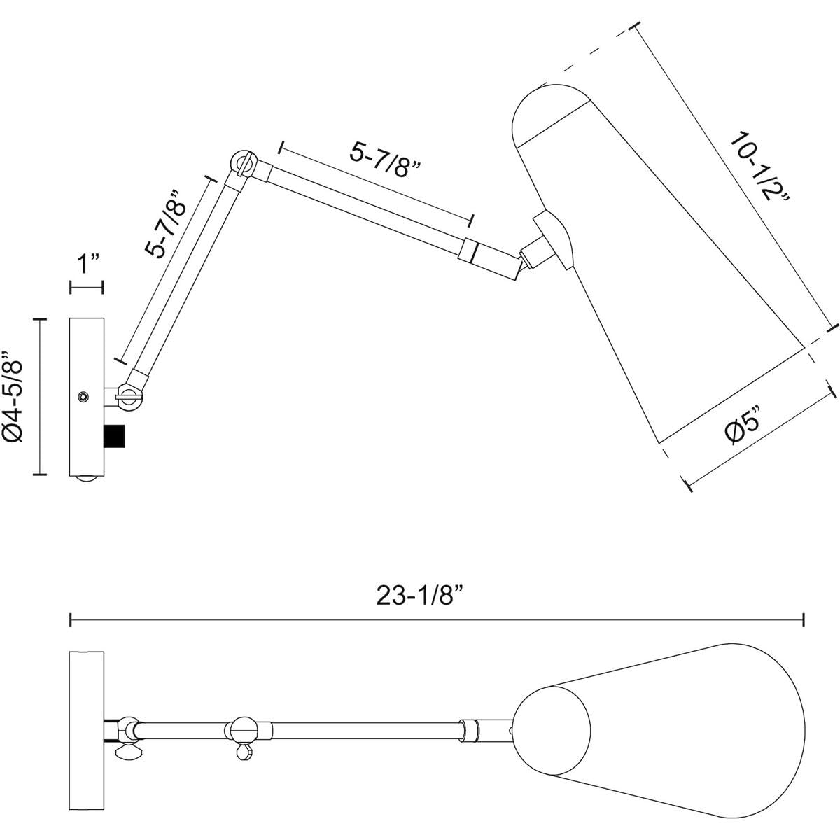 - Fixture: Width 5", Height 10.5", Depth 23.13"