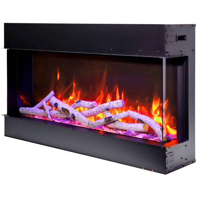 Amantii 60-TRV-SLIM Trv View Slim Smart Electric - 60" Indoor / Outdoor WiFi Enabled 3 Sided Fireplace Featuring a depth of 10 5/8", MultiFunction Remote Control, Multi Speed Flame Motor, and a 10 piece Birch Log Set