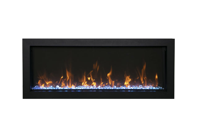 Amantii BI-60-XTRASLIM Panorama Xtraslim Full View Smart Electric - 60" Indoor /Outdoor WiFi Enabled Fireplace, featuring a MultiFunction Remote, Multi Speed Flame Motor, Glass Media & a Black Trim
