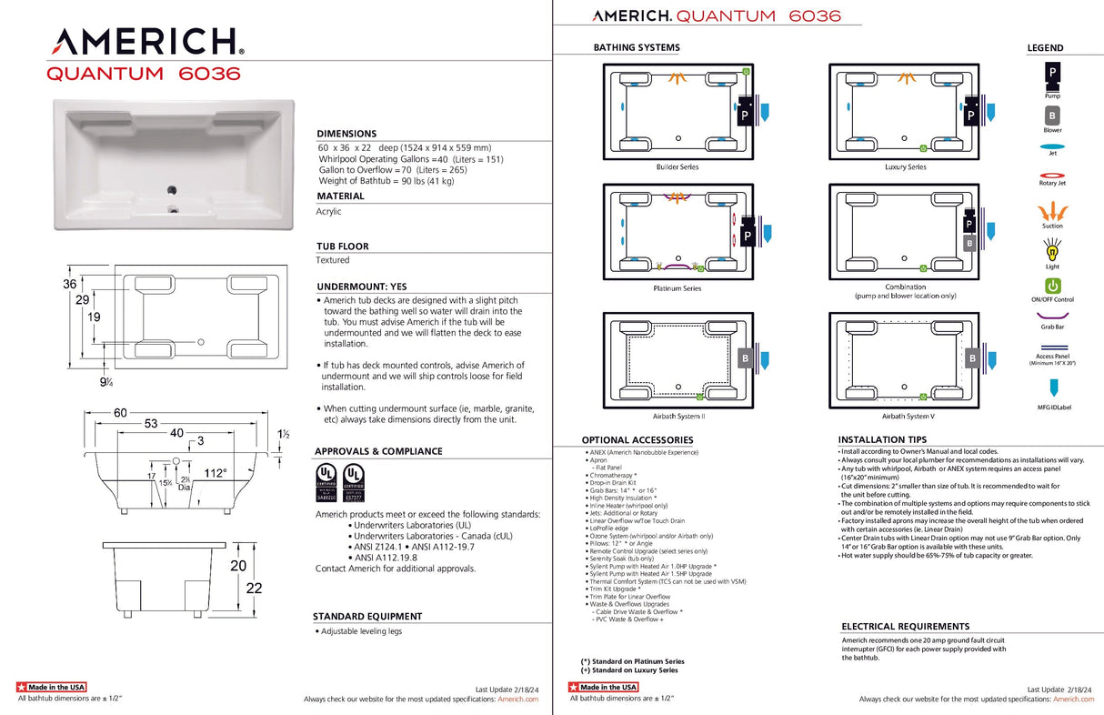 Americh QU6036TA5-BI Quantum 6036 - Tub Only / Airbath 5 - Biscuit