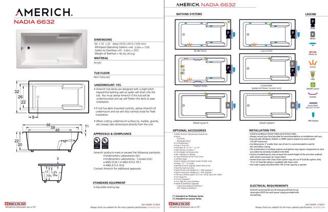 Americh NA6632TA5-BI Nadia 6632 - Tub Only / Airbath 5 - Biscuit