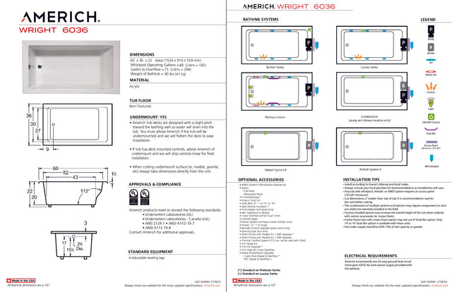 Americh WR6036TA5-BI Wright 6036 - Tub Only / Airbath 5 - Biscuit