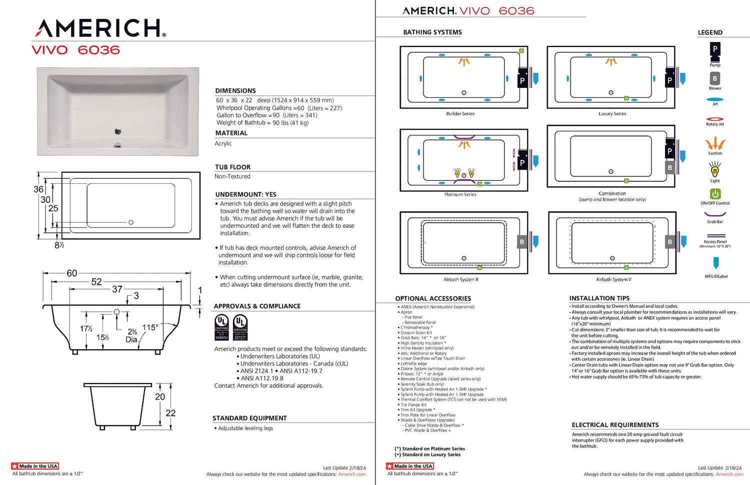 Americh VO6036TA5-BI Vivo 6036 - Tub Only / Airbath 5 - Biscuit