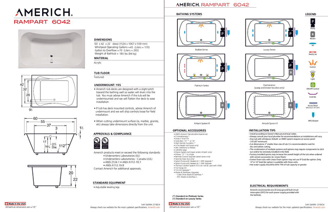 Americh RA6042TA5-BI Rampart 6042 - Tub Only / Airbath 5 - Biscuit