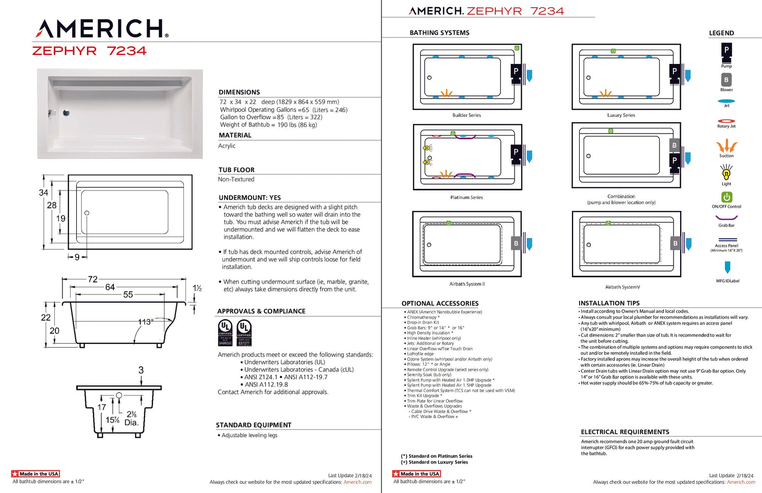 Americh ZP7234TA5-BI Zephyr 7234 - Tub Only / Airbath 5 - Biscuit