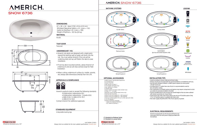 Americh SO6736TA5-BI Snow 6736 - Tub Only / Airbath 5 - Biscuit