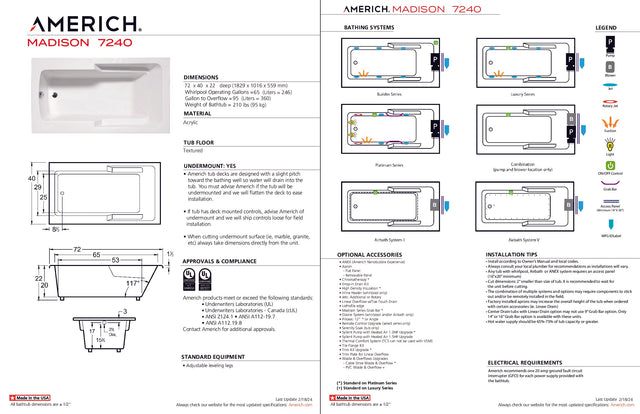 Americh MA7240TA5-BI Madison 7240 - Tub Only / Airbath 5 - Biscuit