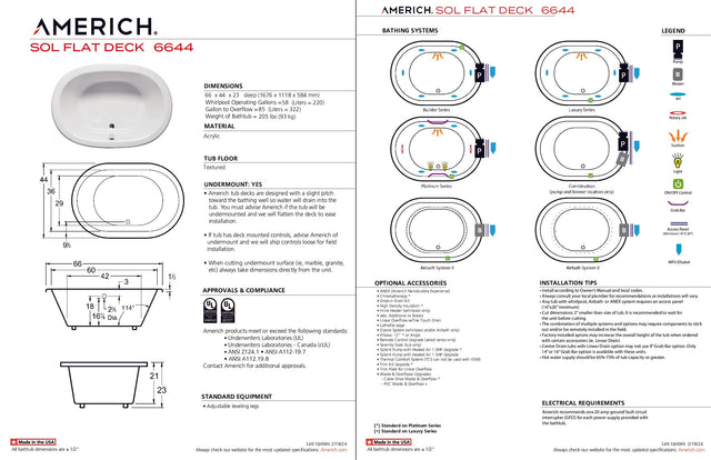 Americh SF6644TA5-BI Sol Flat Deck 6644 - Tub Only / Airbath 5 - Biscuit