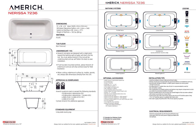 Americh NE7236TA5-BI Nerissa 7236 - Tub Only / Airbath 5 - Biscuit