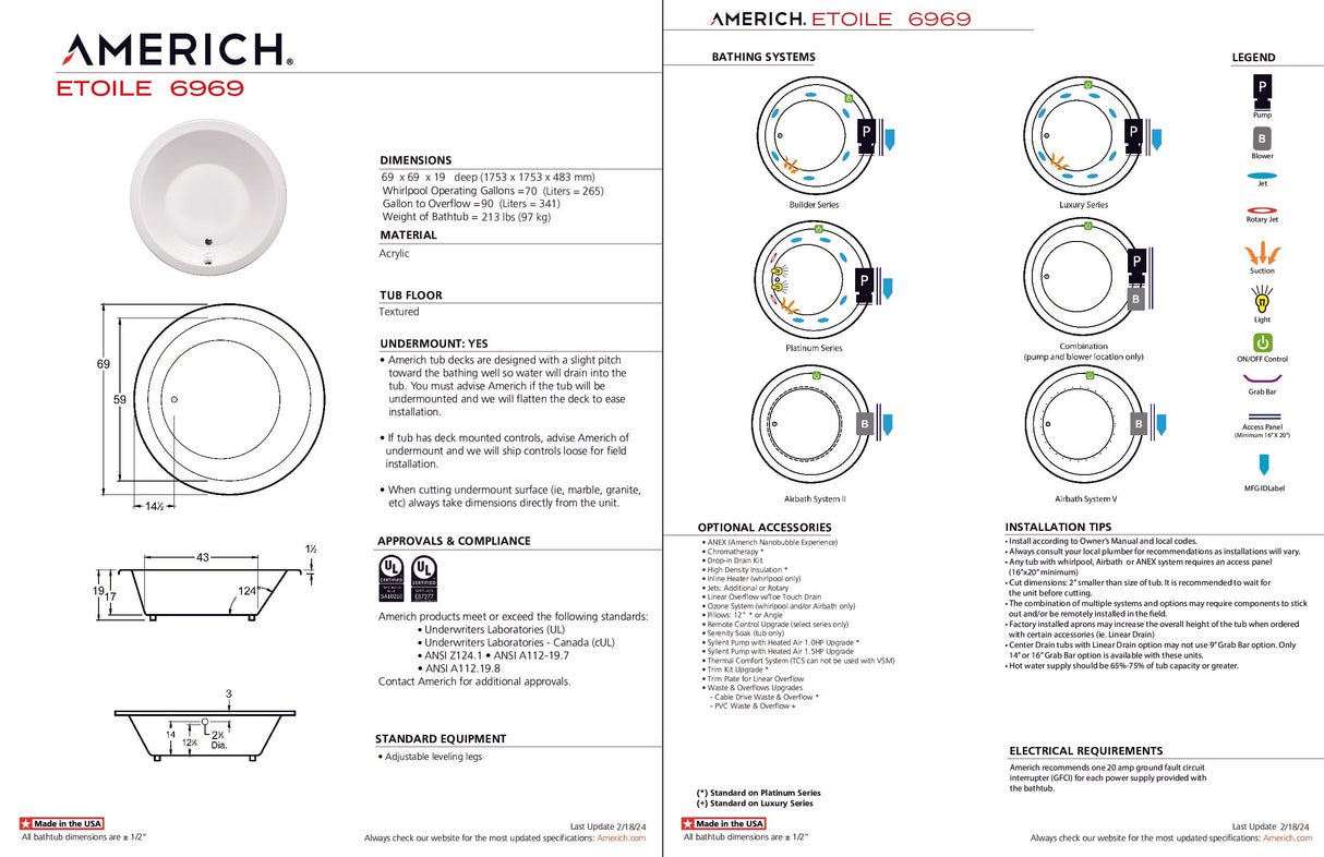 Americh ET6917TA5-BI Etoile 6969 - Tub Only / Airbath 5 - Biscuit