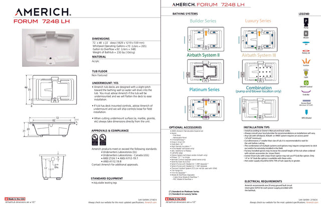 Americh FO7248TLA2-WH Forum 7248 Left Hand - Tub Only / Airbath 2 - White