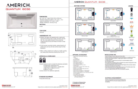 Regular price $3,37500UnavailableAmerich QU6036TA5-BI Quantum 6036 - Tub Only / Airbath 5 - Biscuit