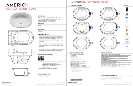Regular price $3,67500UnavailableAmerich SF6042TA2-BI Sol Flat Deck 6042 - Tub Only / Airbath 2 - Biscuit