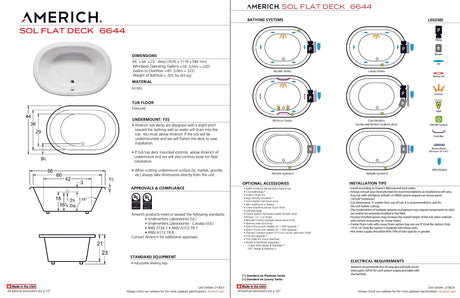 Regular price $3,52500UnavailableAmerich SF6644TA5-BI Sol Flat Deck 6644 - Tub Only / Airbath 5 - Biscuit