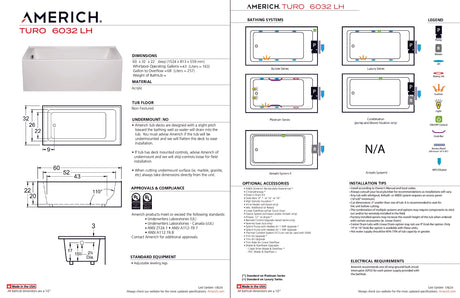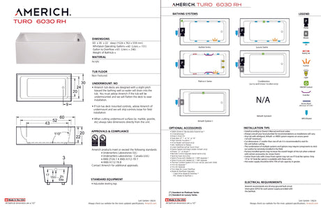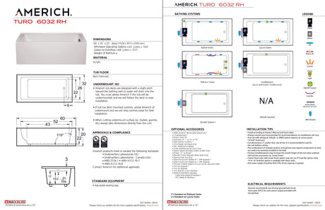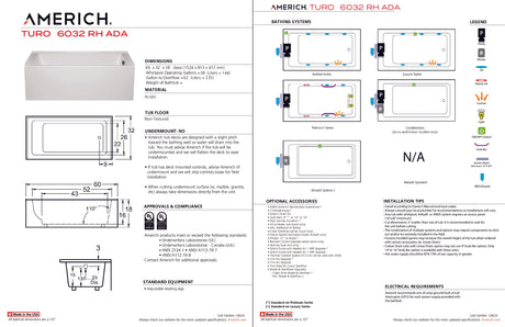 Regular price $3,30000UnavailableAmerich TO6032ADATRA2BI Turo 6032 ADA Right Hand - Tub Only / Airbath 2 - Bis...