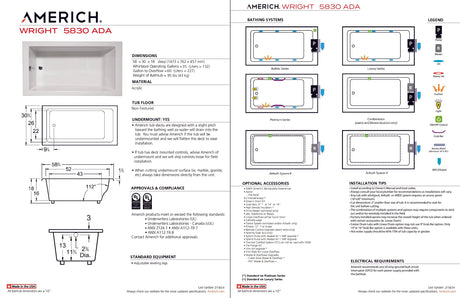 Regular price $3,67500UnavailableAmerich WR5830ADATA5-WH Wright 5830 ADA - Tub Only / Airbath 5 - White