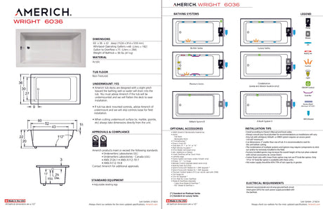 Regular price $3,22500UnavailableAmerich WR6030TA5-BI Wright 6030 - Tub Only / Airbath 5 - Biscuit