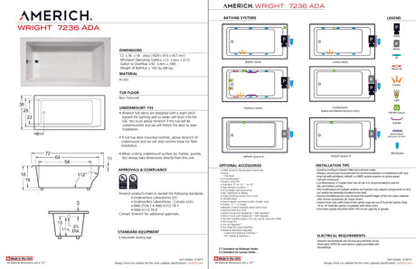 Regular price $3,22500UnavailableAmerich WR7236ADATA5-WH Wright 7236 ADA - Tub Only / Airbath 5 - White