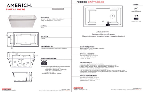 Regular price $6,52500UnavailableAmerich ES6636PA2-WH Esmeralda 6636 - Platinum Series / Airbath 2 Combo - White