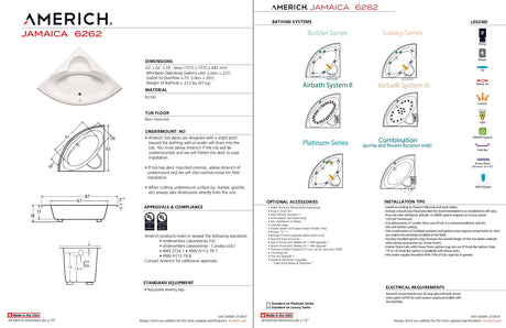Regular price $4,65000UnavailableAmerich KN6030LRA2-BI Kent 6030 Right Hand - Luxury Series / Airbath 2 Combo ...