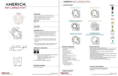 Regular price $5,10000UnavailableAmerich KL4747TA2-WH Key Largo 4747 - Tub Only / Airbath 2 - White