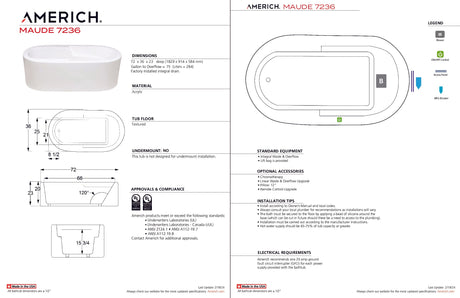 Regular price $5,13750UnavailableAmerich MZ6032LLA2-WH Mezzaluna 6032 ADA Left Hand - Luxury Series / Airbath ...