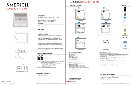 Regular price $6,45000UnavailableAmerich BV4848PA5-WH Beverly 4848 - Platinum Series / Airbath 5 Combo - White