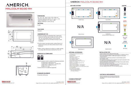 Regular price $4,05000UnavailableAmerich MC6030TRA5-WH Malcolm 6030 Right Hand - Tub Only / Airbath 5 - White