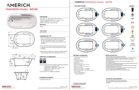 Regular price $3,67500UnavailableAmerich OM6036TA2-BI Madison Oval 6036 - Tub Only / Airbath 2 - Biscuit