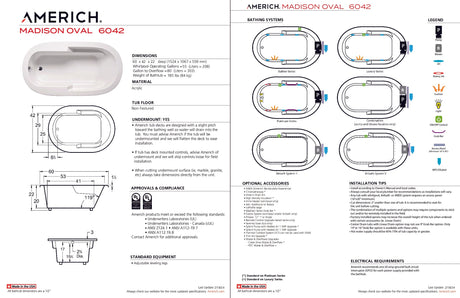Regular price $3,37500UnavailableAmerich OM6042TA2-BI Madison Oval 6042 - Tub Only / Airbath 2 - Biscuit