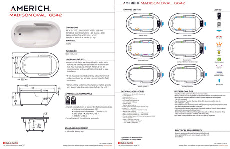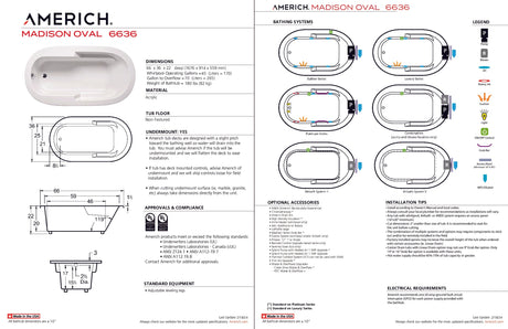 Regular price $3,52500UnavailableAmerich OM6636TA2-BI Madison Oval 6636 - Tub Only / Airbath 2 - Biscuit