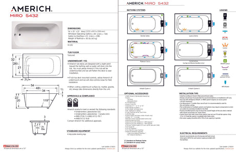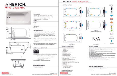 Regular price $3,22500UnavailableAmerich MI5432ADATA2-BI Miro 5432 ADA - Tub Only / Airbath 2 - Biscuit