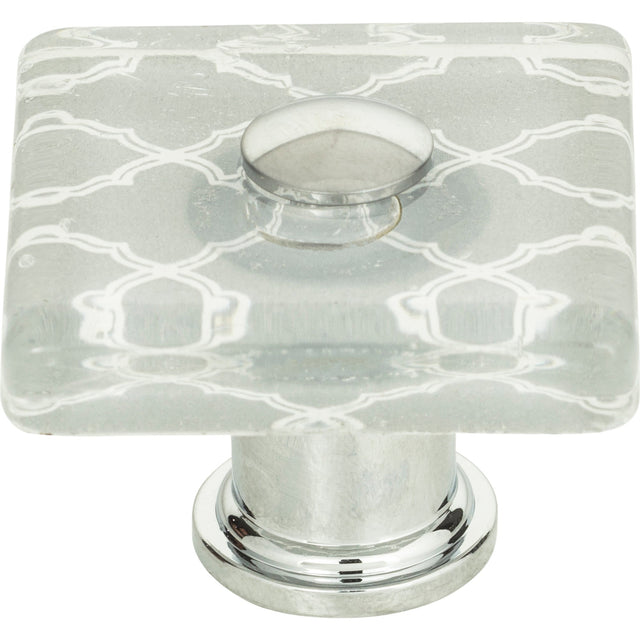 Atlas Homewares Quatrefoil Glass Square Knob 1 1/2 Inch Polished Chrome