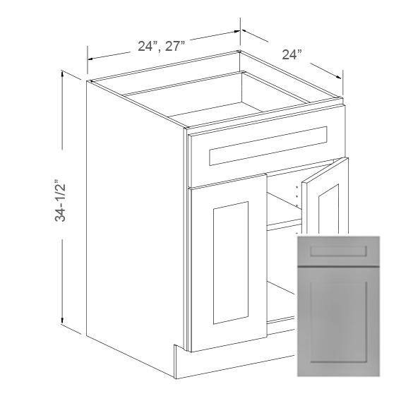 Poshhaus Cabinets Base Cabinet with 1 Drawer and 2 Doors - B24 / S5 Castle Grey