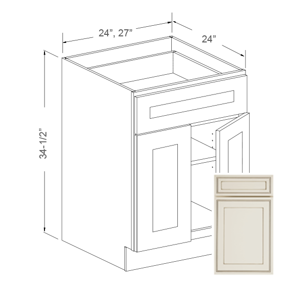 BASE CABINET 1 DRAWER, 1 DOOR, 1 SHELF - 27" WIDE X 24" DEEP X 34.5" HIGH