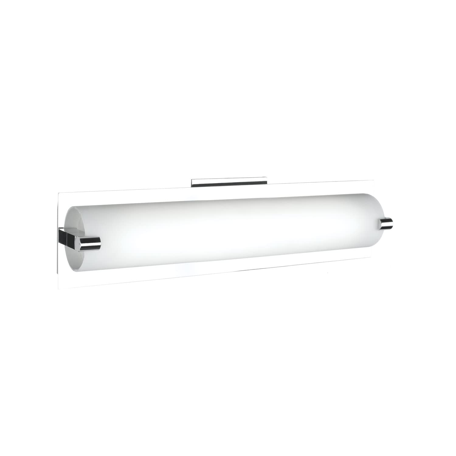 Single lamp vanity with white opal glass cylinder and frosted side covers, metal details available in brushed nickel or chrome finish. Equipped with our powerful 120V AC LED technology. Available in three different sizes see series for full details.