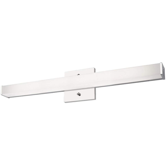 Simplistic Modern LED with rectangular shaped white acrylic finished with chrome end caps and matching canopy. Equipped with our powerful 120V AC LED technology, and may be mounted horizontally or vertically. Available in three different sizes and four different design styles.