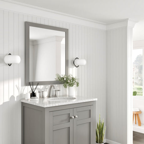 31" Geneva Metal Grey Vanity with White Carrara Marble Counter-Top, Gerb...