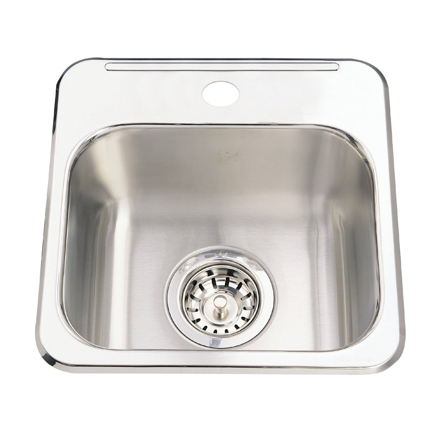 KINDRED QSL1313-6-1N Utility Collection 13.63-in LR x 13.63-in FB x 6-in DP Drop In Single Bowl 1-Hole Stainless Steel Hospitality Sink In Satin Finished Bowl with Mirror Finished Rim