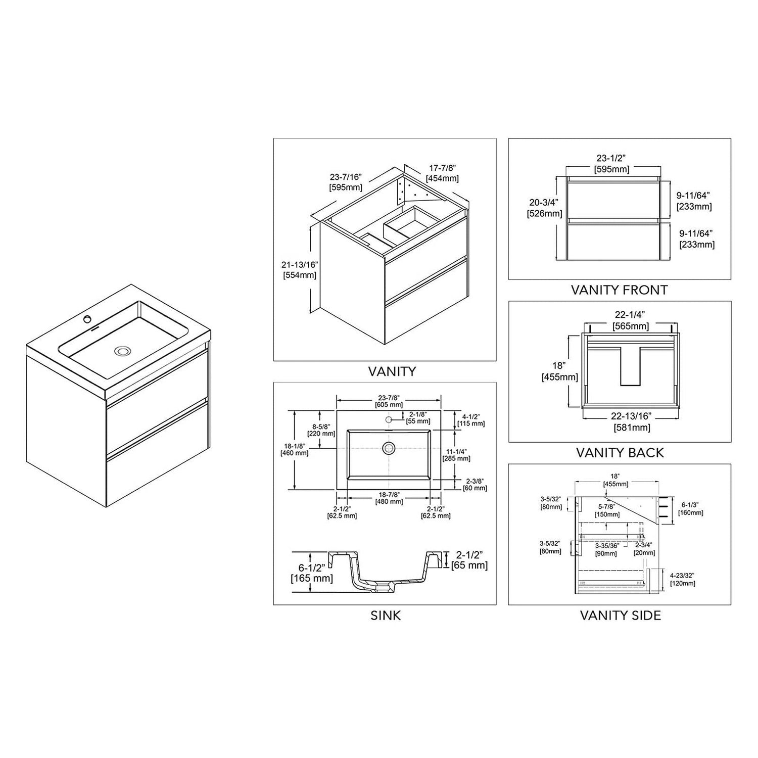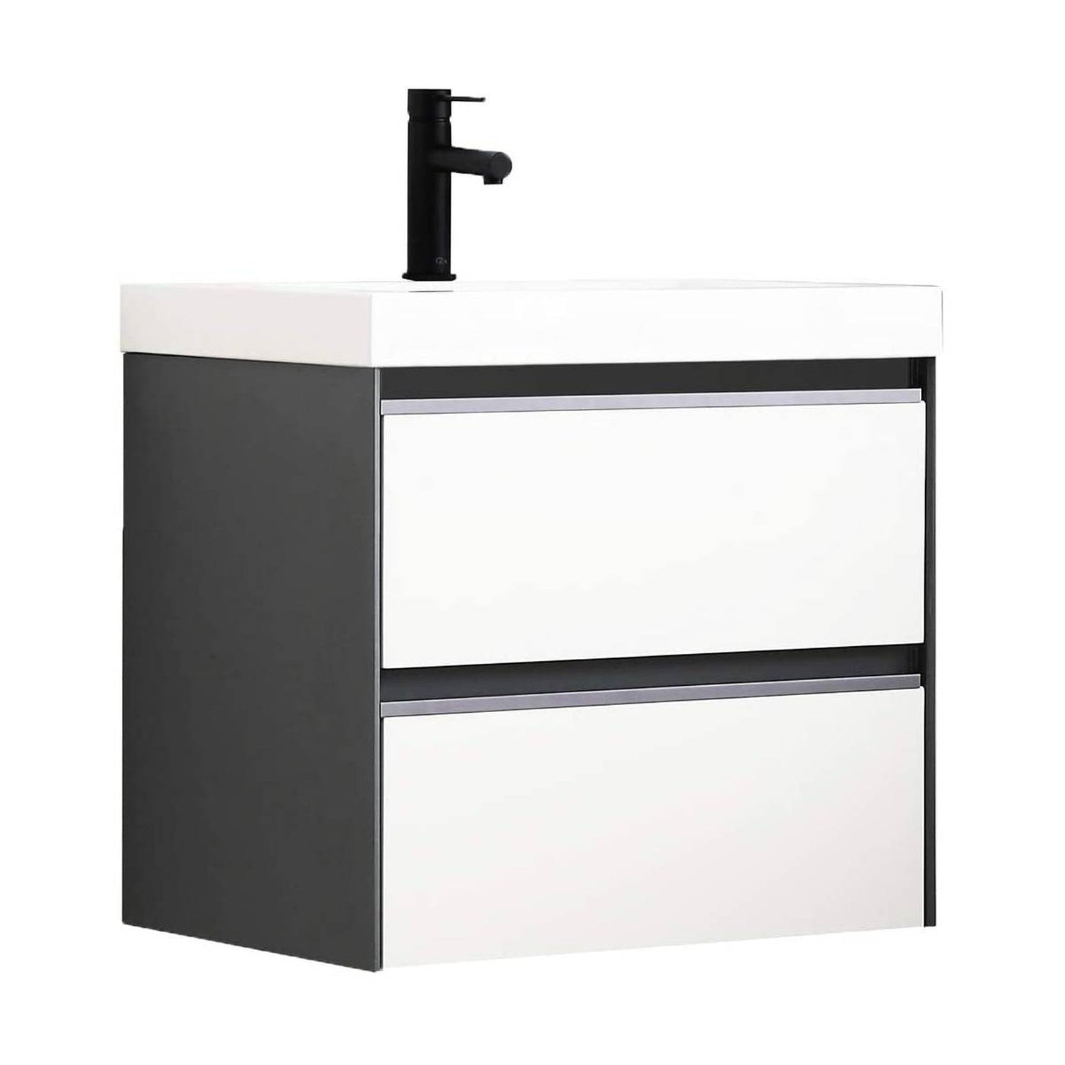 Blossom Berlin 24" 2-Drawer Glossy White & Glossy Grey Wall-Mounted Vanity Set With Acrylic Top And Integrated Single Sink