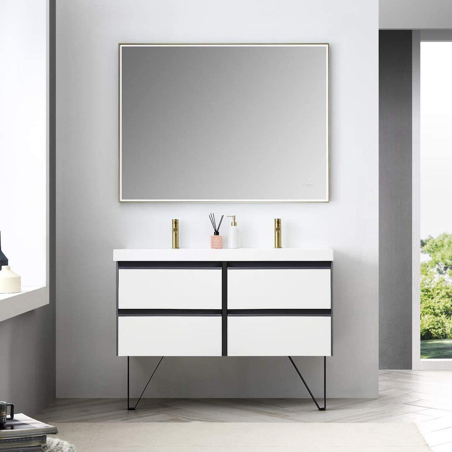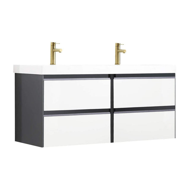 Blossom Berlin 48" 4-Drawer Glossy White & Glossy Grey Wall-Mounted Vanity Set With Acrylic Top And Integrated Double Sink