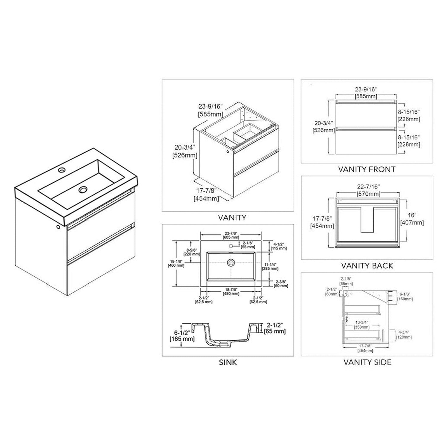 Blossom Jena 24" 2-Drawer Light Gray Wall-Mounted Vanity Set With Acrylic Top and Integrated Single Sink