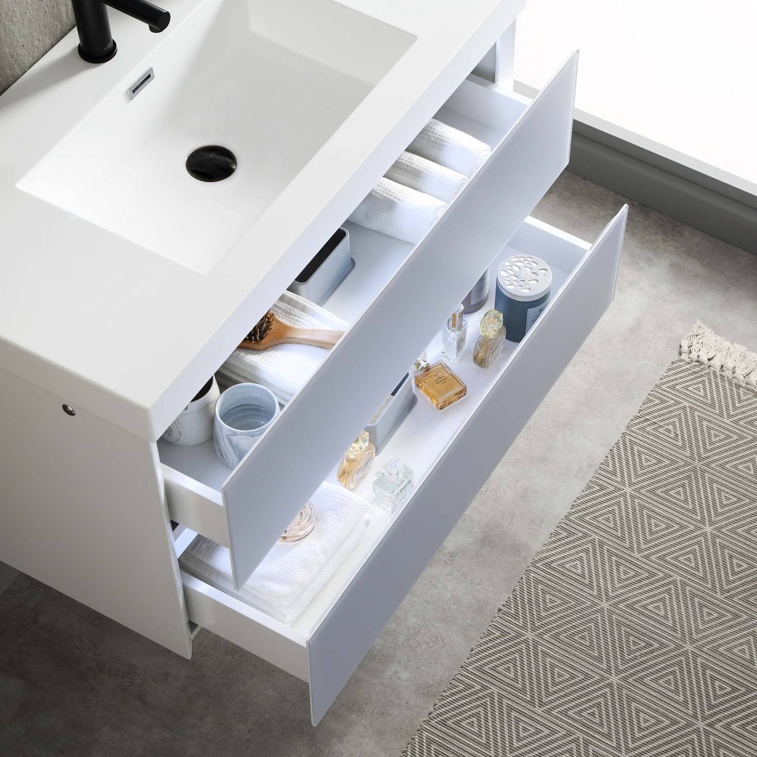 Blossom Jena 36" 2-Drawer Light Gray Wall-Mounted Vanity Set With Acrylic Top and Integrated Single Sink